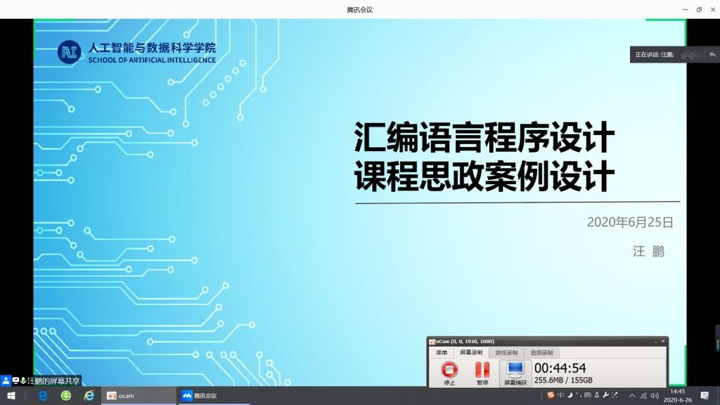 汪鹏老师以“汇编语言与高级语言”、“分组协作”和“国产CPU的发展现状”三个案例,介绍了《汇编语言程序设计》课程的课程思政设计方法。