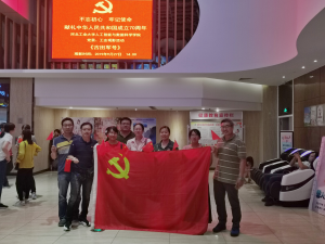 为庆祝中华人民共和国成立70周年,深入开展“不忘初心、牢记使命”主题教育活动, 9月27日下午,成人小说 党委将主题教育课堂“搬到”电影院,组织党员师生共计300余人在北辰区瑞景横店影院集中观看了革命历史题材电影《古田军号》。