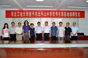 6月20日下午,我院优秀生源基地建设挂牌队伍赶赴第二站藁城一中,藁城一中校长刘虎成、副校长陈建立、副书记宋建辉参加了仪式。商书记首先对藁城一中长期以来为成人小说 输送大批优秀学子表达了感谢,表示成人小说 将利用自己综合性大学的资源优势,为藁城一中在教育、教学、管理等方面提供咨询,并大力支持藁城一中做好优秀学生的培养工作。刘虎成校长对成人小说 选择藁城一中作为优质生源基地表示衷心的感谢,藁城一中将以此为契机,进一步提高办学质量,与河北工大展开更深入更广阔的合作,实现教育资源共享,促进双方互惠共赢,共同发展。刘虎成校长表示学校将加大对河北工大的宣传力度,积极引导毕业生报考,为成人小说 输送更多的优质生源。商书记和刘校长分别代表成人小说 和藁城一中双方签署协议书,并举行了授牌仪式。我院党支部书记田红丽老师代表实验室党支部与藁城一中对接,并决定派支部党员代表参加23日为成人小说 专门组织的招生宣传活动。