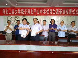 6月22日上午,我院优秀生源基地建设挂牌队伍赶赴此次对接最后一站平山中学,平山中学校长郭建国就此次对接进行了接洽。商书记代表成人小说 表达了对平山中学不断输送、培养优秀学子的感谢,并表示平山中学位于西柏坡革命圣地平山县,培养出了大批优秀学子,希望更多的平山中学学生报考河北工大。郭建国校长对成人小说 选择平山中学作为优质生源基地表示衷心的感谢,平山希望以此为契机,与河工大进一步加强联系,输送更多的优秀生源,并对两校未来的合作充满信心和期望。商书记和郭校长分别代表成人小说 和平山中学双方签署协议书,并举行了授牌仪式。我院党支部书记陈海永老师代表智能系党支部与平山中学对接,并决定多留一天参加23日到平山中学高三毕业仪式,为同学们报考提供更大的支持。