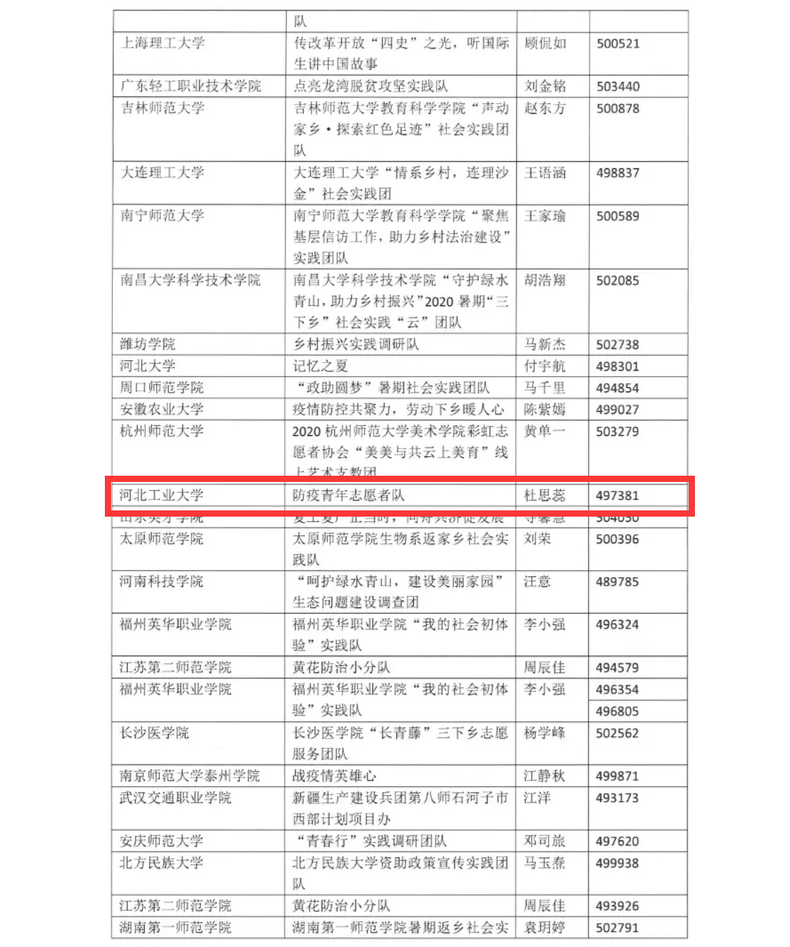 “趁年轻 去基层”2020全国大学生“千校千项”活动自2020年8月启动以来得到全国各高校青年学生积极参与,竞争十分激烈,共遴选出300个“最美团队”、300名“青年基层观察员”、384个“基层新画卷”入选。我院学生、团队经过作品申报、资格筛查、网络点赞、专家评审等环节,成功入选。