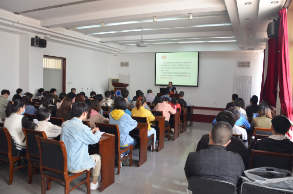 4月16日下午,校党委常委、副校长段国林到成人小说 为师生们做党史学习教育宣讲暨“开学第一堂党课”。成人小说 党委书记梁慧超主持宣讲会,成人小说 全体班子成员、教工党支部书记以及师生党员代表参加宣讲会。