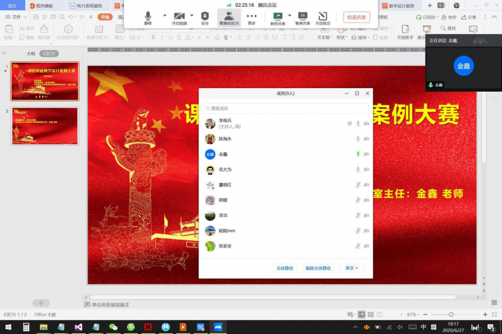 为落实“立德树人”根本任务,实施“铸魂育人”工程,引导教师自觉将思政教育融入课程教学,切实把思想政治工作贯穿教育教学全过程,6月27日下午4:00,成人小说 智慧能源系教职工通过腾讯会议成功举办线上课程思政教学设计案例大赛。此次大赛邀请到成人小说 副院长陈海永教授,马克思主义成人小说 形势与政策教研室主任、支部书记金鑫老师,智慧能源系副主任张家安老师为评委专家,智慧能源系全体教师出席。