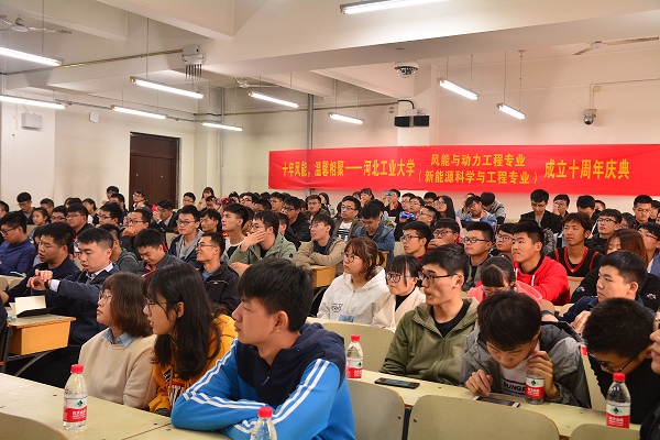 本科生工作部部长孙立雄回顾了风能专业十年的发展及师生取得的成绩,寄语各届学子勿忘“勤、慎、公、忠”,齐心协力推动行业发展,使风能服务于国家发展,并诚邀各届学子关注学校,常回母校。王华君教授回顾了风能专业成立十年来的历程,寄语风能人要拓宽人生格局,由行业需求转变为行业人才,聚焦人工智能技术、大数据等科技前沿,引领智慧新能源发展。校友代表和在校生代表也发表了讲话,表明不忘师恩教诲,不忘母校校训,在以后工作学习中要踏实进取,传承风能薪火,引领风能创造新的辉煌。